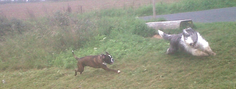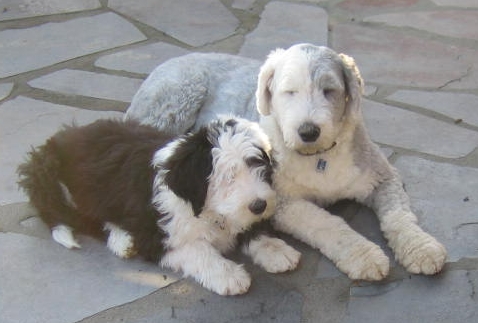 " Syrah " rechts, 6 Mon. alt und eine alte Bobtail-Dame |