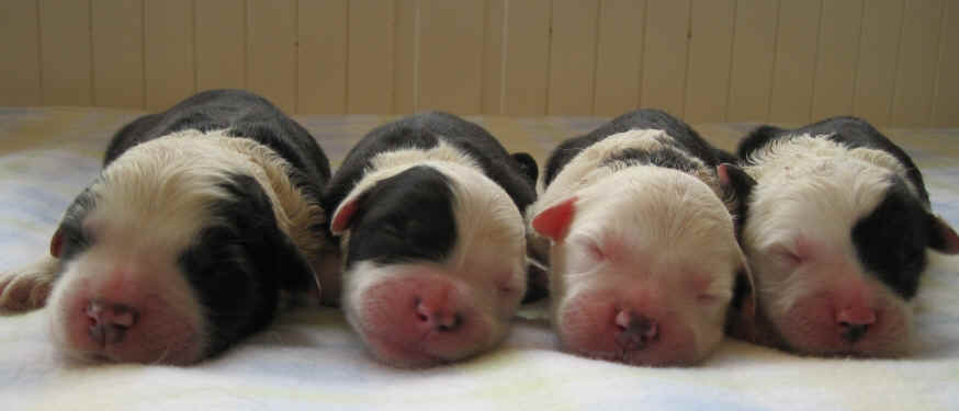 "Frl. Korn" hat 3 Jungs und 1 Mädchen geworfen, Welpen 1 Tag alt.